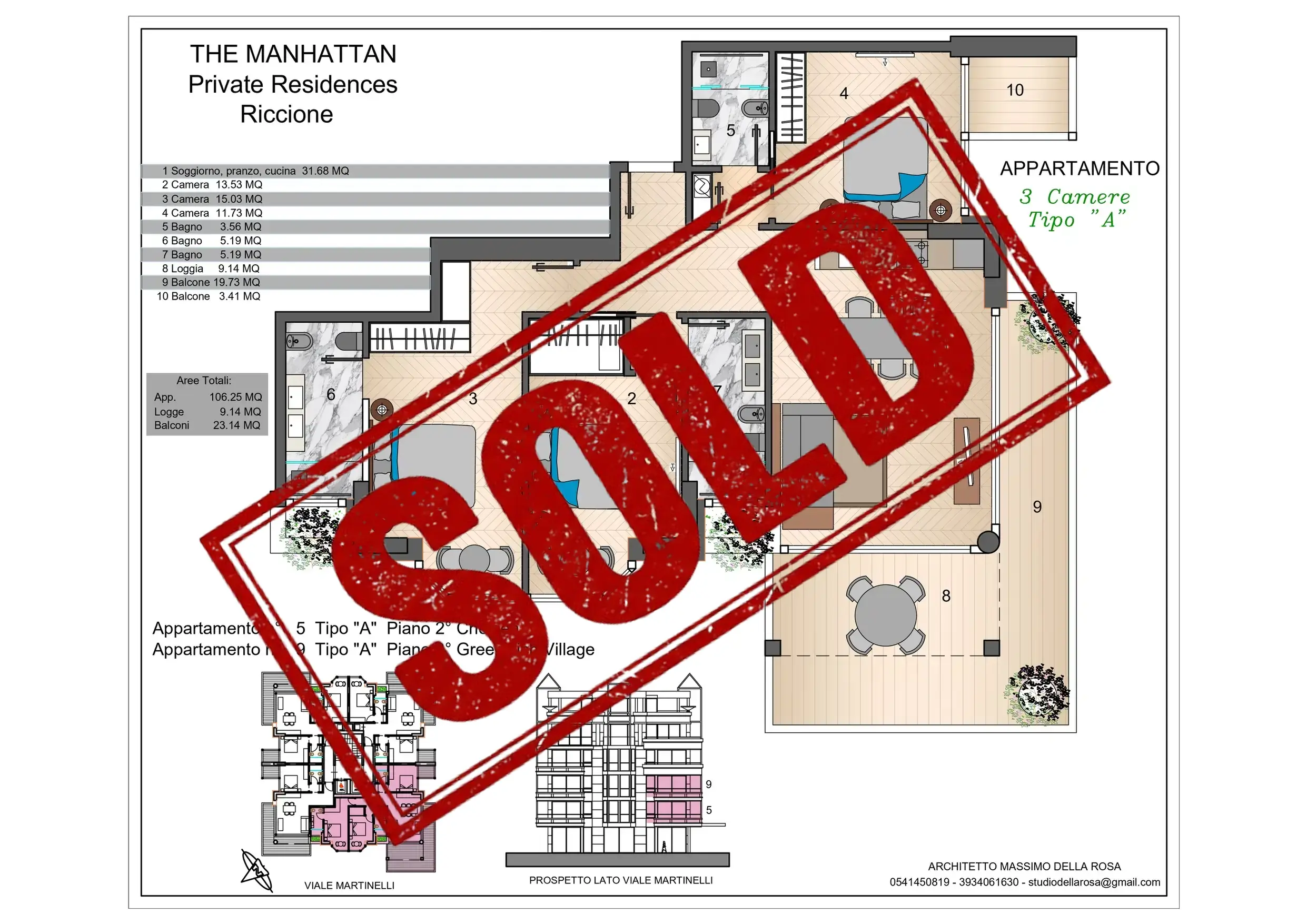 All apartments qualify for the full “prima casa” tax regime (Municipal Council Resolution no. 28 of 28.05.2025 – Riccione):